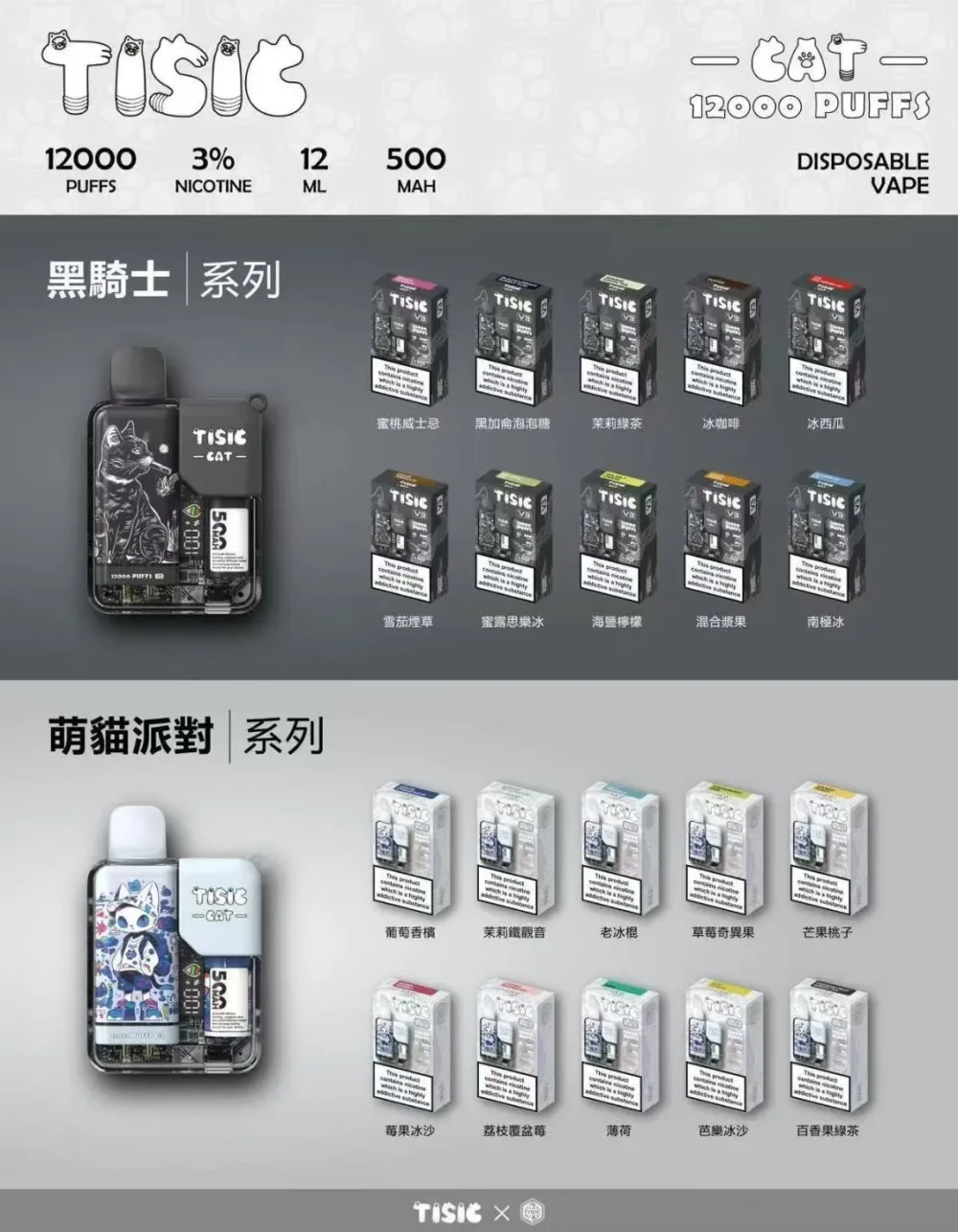 TISIC 黑騎士&萌貓派對 12000口一次性電子煙