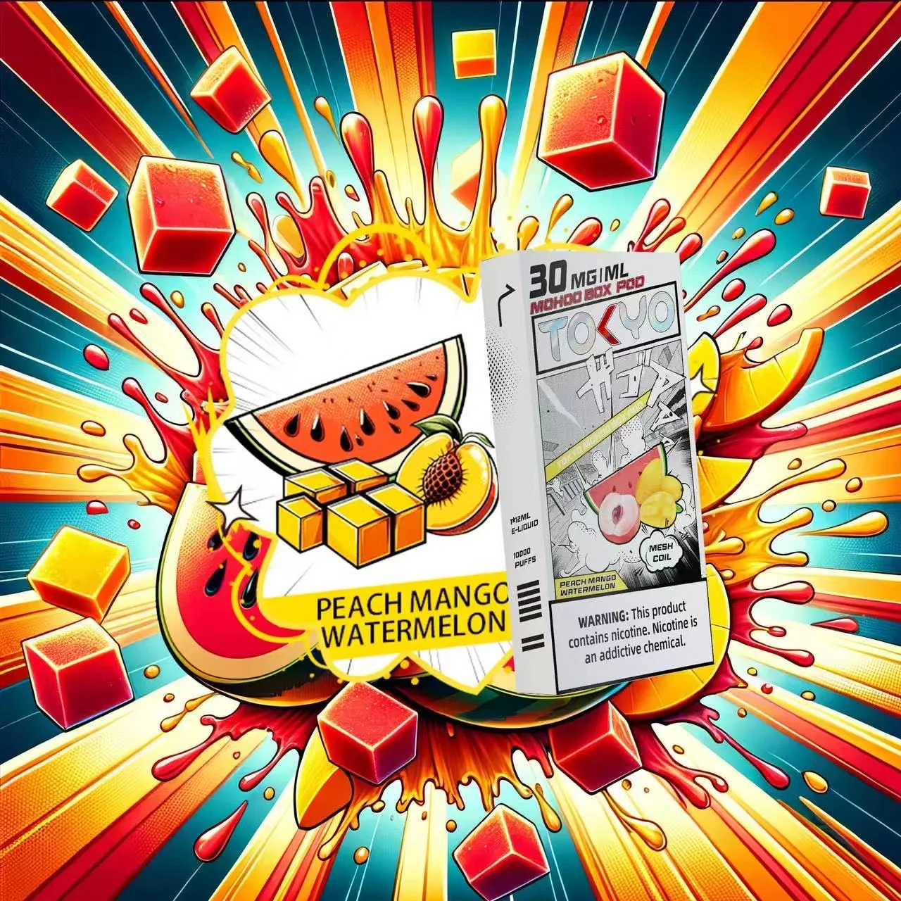 東京魔盒電子煙煙彈採用植物甘油與丙二醇基底,搭配高純度尼古丁鹽,容量 12 mL、尼古丁強度 30 mg/mL(3%),搭載 1.0Ω 鋼網棉霧化芯,設計為一次性 pod,約 10,000 口,吸引力持久。